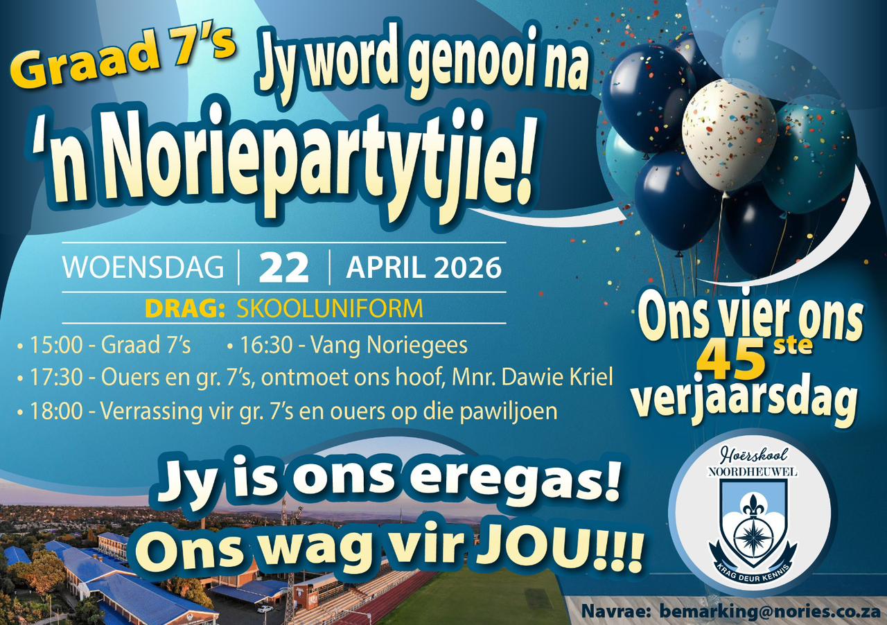Nories bied beslis geleenthede vir elkeen van die 2000 leerders in die skool. By die skool respekteer leerders en personeel mekaar. Daar word hard gewerk, uitnemende prestasies word behaal, maar dit is ook hier waar elkeen sy of haar plek vind. Respek, liefde en eensgesindheid is belangrik vir Nories. Dié skool is beslis nie net passievol oor akademie, sport en kultuur nie, maar ook passievol oor die lewe! Nories, die grootste Afrikaanse skool in die wêreld, is trots op elke leerder.